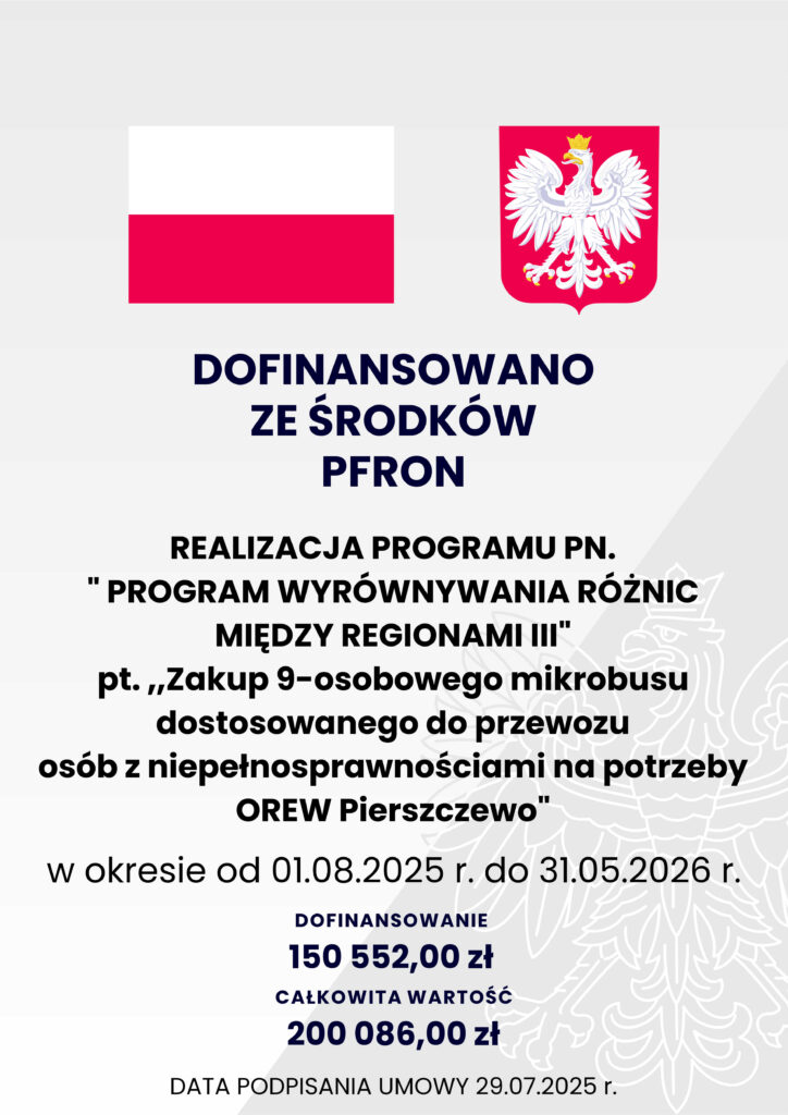 „Zakup 9-osobowego mikrobusu dostosowanego do przewozu osób z niepełnosprawnościami na potrzeby OREW Pierszczewo” 2025